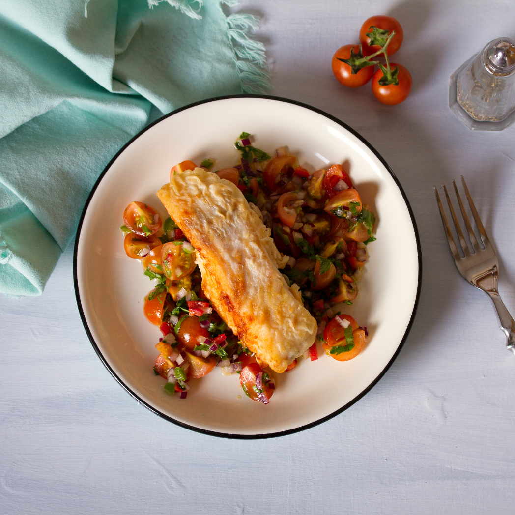 Kerstrecept! Gebakken kabeljauw met rode puntpaprika, tomaat en rode pesto