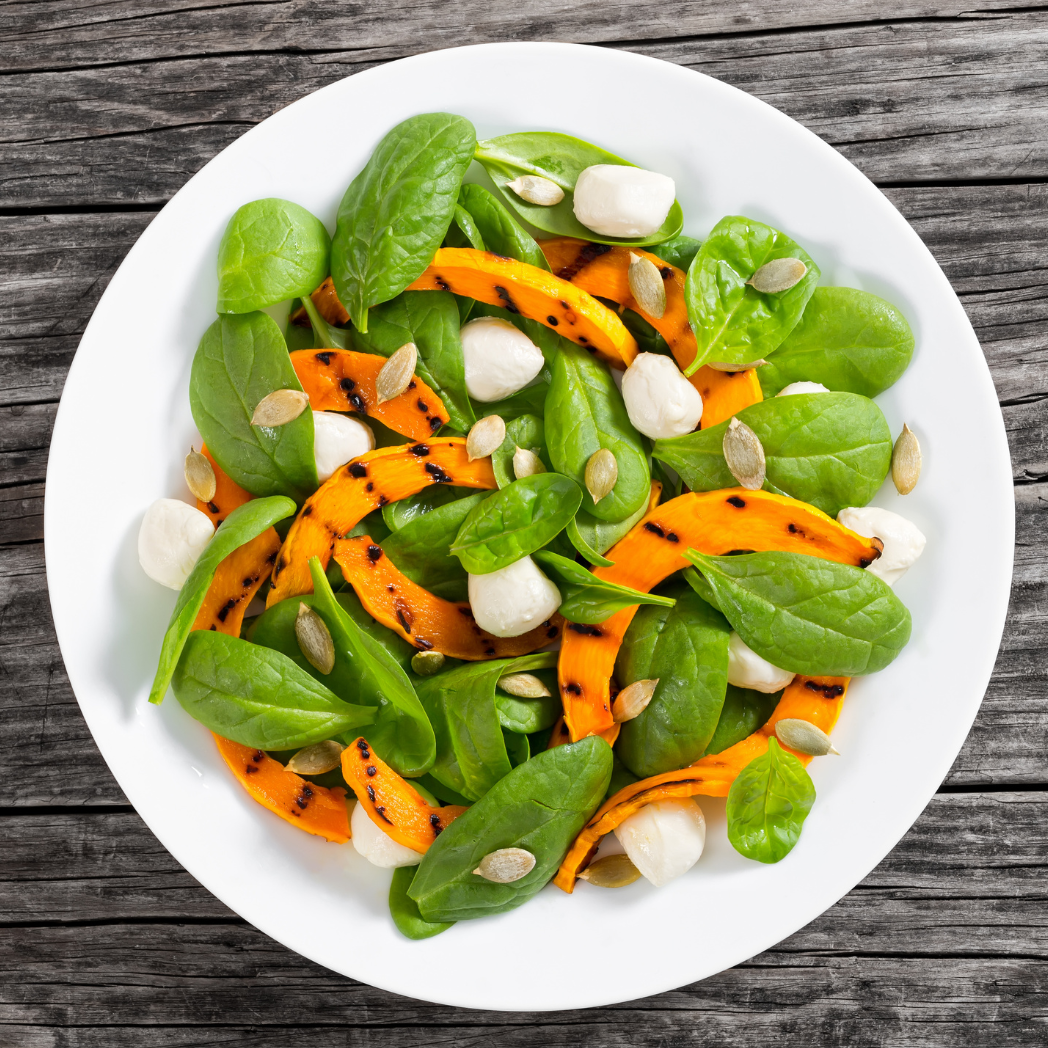 Herfstrecept - Salade met geroosterde pompoen en spinazie